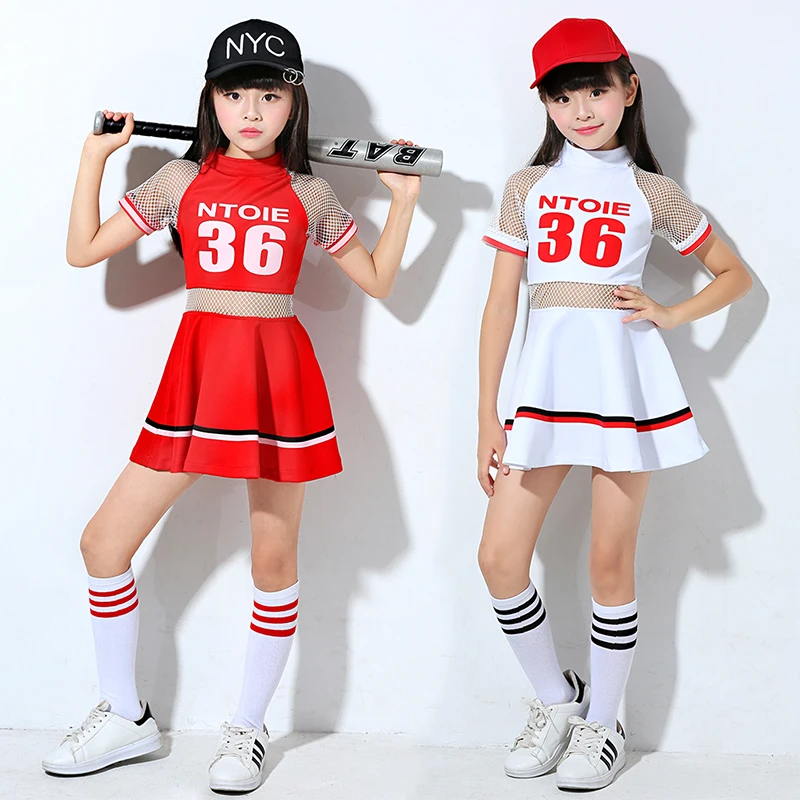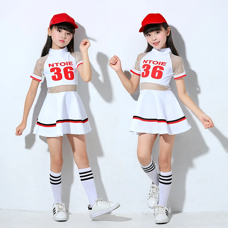 HIGH QUALITY Modern new cheerleading costumes for girls dance clothes and network red white dress suit children'