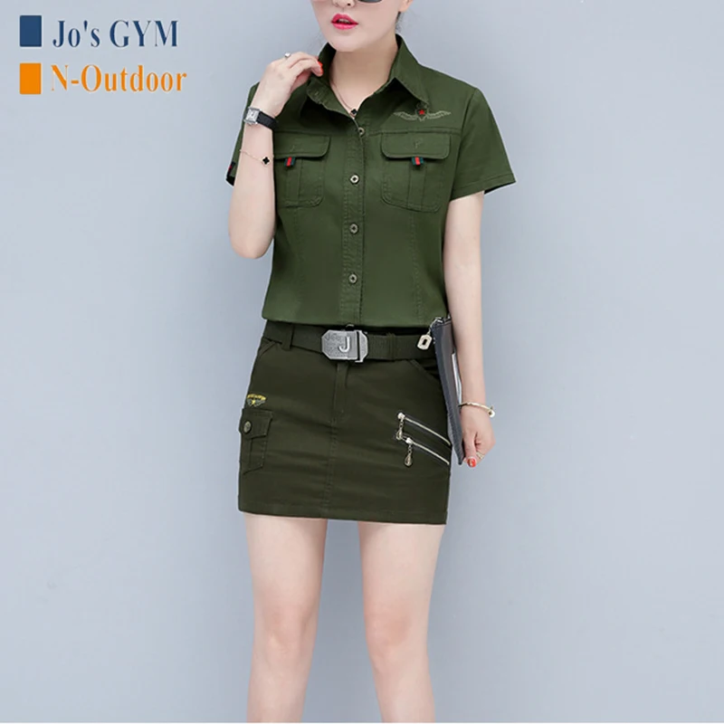 Best Quality New Outdoor Slim Plus Size Army Suit Women Cotton Military Shirt Tight Skirt Summer Fashion Dancing